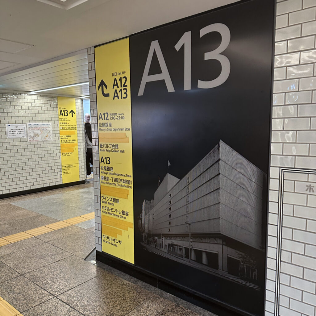 東京メトロ銀座線銀座線のホーム対向壁及び構内通路のサインに採用いただいております。